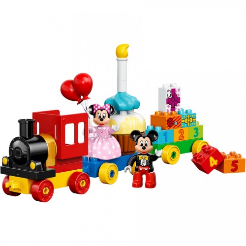All aboard the Mickey Mouse Clubhouse birthday train as Mickey and Minnie throw a parade in your honor! Load up the train with everything you need for the perfect birthday party — a buildable cake, balloons and decorated gift bricks. How old are you today? With decorated age bricks numbered from 1 to 5, Mickey and Minnie can bring birthday fun year after year. Young children will love the endless birthday role-play opportunities and developing their construction skills with the big, bright LEGO DUPLO bricks designed especially for budding builders. Includes two LEGO DUPLO figures: Mickey Mouse and Minnie Mouse.
