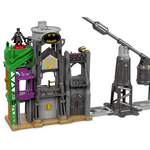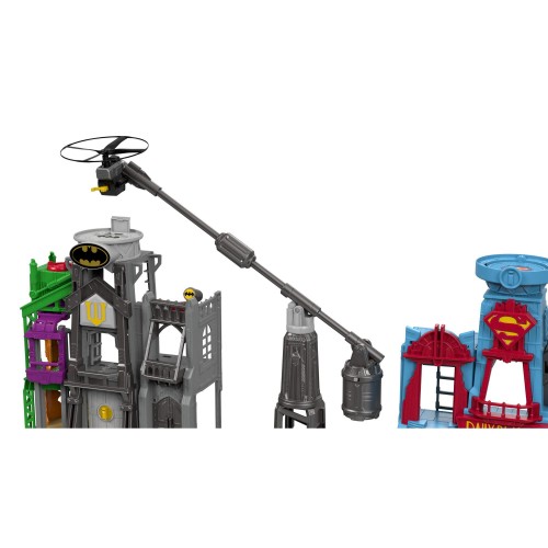 - ?Includes Metropolis and Gotham City playsets with flight tower connector, Batman and Superman figures, flight suit, 4 pie projectiles, 2 other projectiles and a manual elevator