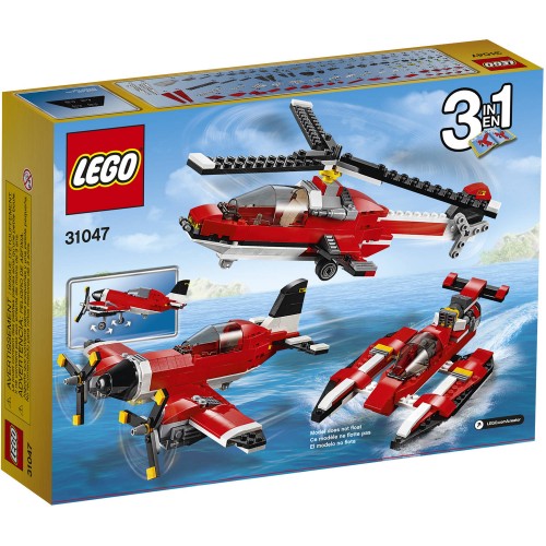 Experience this classic aircraft, featuring a beautiful red, white and black color scheme, spinning propellers and an opening cockpit with room for a minifigure (not included). Climb aboard, zoom down the runway and launch into the air. When you've completed your flight, lower the wheels to make a perfect landing! Rebuild to create a high-tech hydroplane or a helicopter.