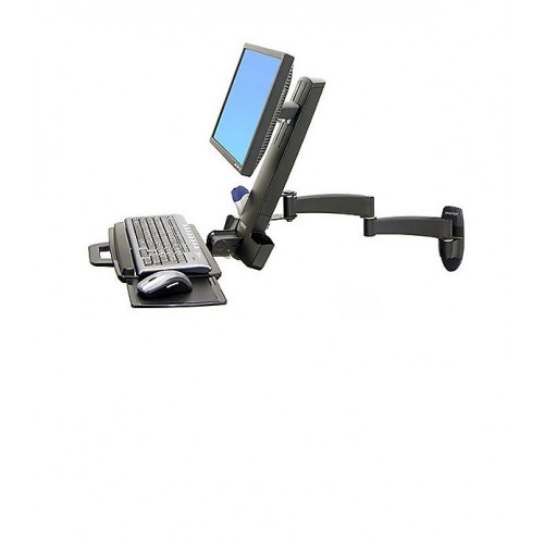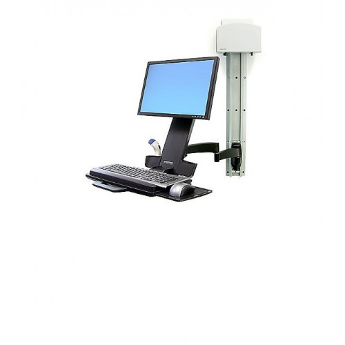 | Attach your LCD and keyboard to the 200 Combo and free up space. This wall unit solution features 3-point telescoping motion, providing greater reach to bring the system to where it’s needed.Product Benefits: •Five-inch (13 cm) LCD height adjustment •Extremely easy to clean promotes infection control •Barcode scanner holder provides easy access to hand-held scanner •Extends/retracts LCD and keyboard up to 39" (99 cm) fold equipment back out of the way when not in use. With the keyboard folded up, total system depth is as little as 12" (31 cm) •Ergonomic negative-tilt keyboard tray with left or right mouse tray ensures wrists remain in a neutral position during data entry •Constant Force, patented lift technology provides fluid, one-touch adjustment of LCD •Clean, concealed and neat routing of cables through the expansive cable management system Tech Specs: •Includes: 200 Combo Arm, wall mount bracket, height-adjustable LCD mount, wrist rest, scanner and mouse holder, integrated keyboard tray with left/right mouse tray, handle, VESA mounting kit, cable ties •Weight Capacity: display = 6-18 lbs (2.7-8.2 kg) keyboard, mouse and barcode scanner = 5 lbs (2.3 kg) •Height of display adjusts 5" (13 cm) height of keyboard tray is fixed •Monitor up/down tilt = +25°/-5 •Mounting Standards: VESA FDMI, MIS-D, 75/100, C (hole patterns = 100 x 100 mm and 75 x 75 mm) •Integrated fold-down keyboard tray with right/left mouse tray (includes built-in mouse pad surface) •Negative-tilt keyboard tray adjustable 0 to -10 degrees •Mounting Options: Mounts to sturdy vertical surfaces. Where applicable, attach to wood stud. Separately ordered Wall Track or Wall Plate accessory is recommended to strengthen installation by distributing weight over a larger surface area •Shipping Dimensions: 12.4"H x 20"W x 23.6"D (315 x 508 x 605 mm) •Shipping Weight: 22.7 lbs (10.3 kg) •Warranty: Five (5) years |