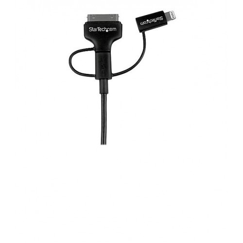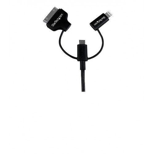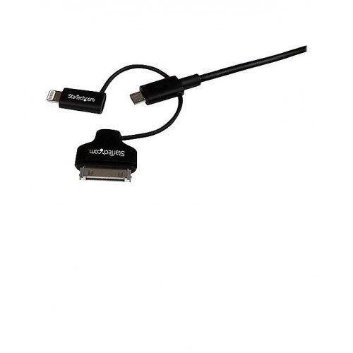This convenient 3-in-1 cable lets you charge and sync your Apple Lightning equipped devices, 30-pin Apple devices or your Android mobile devices, through a USB port on your PC or Mac computer.