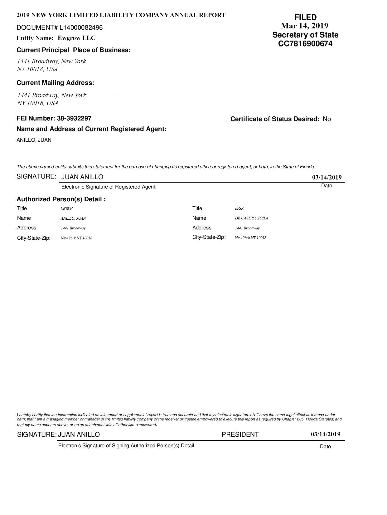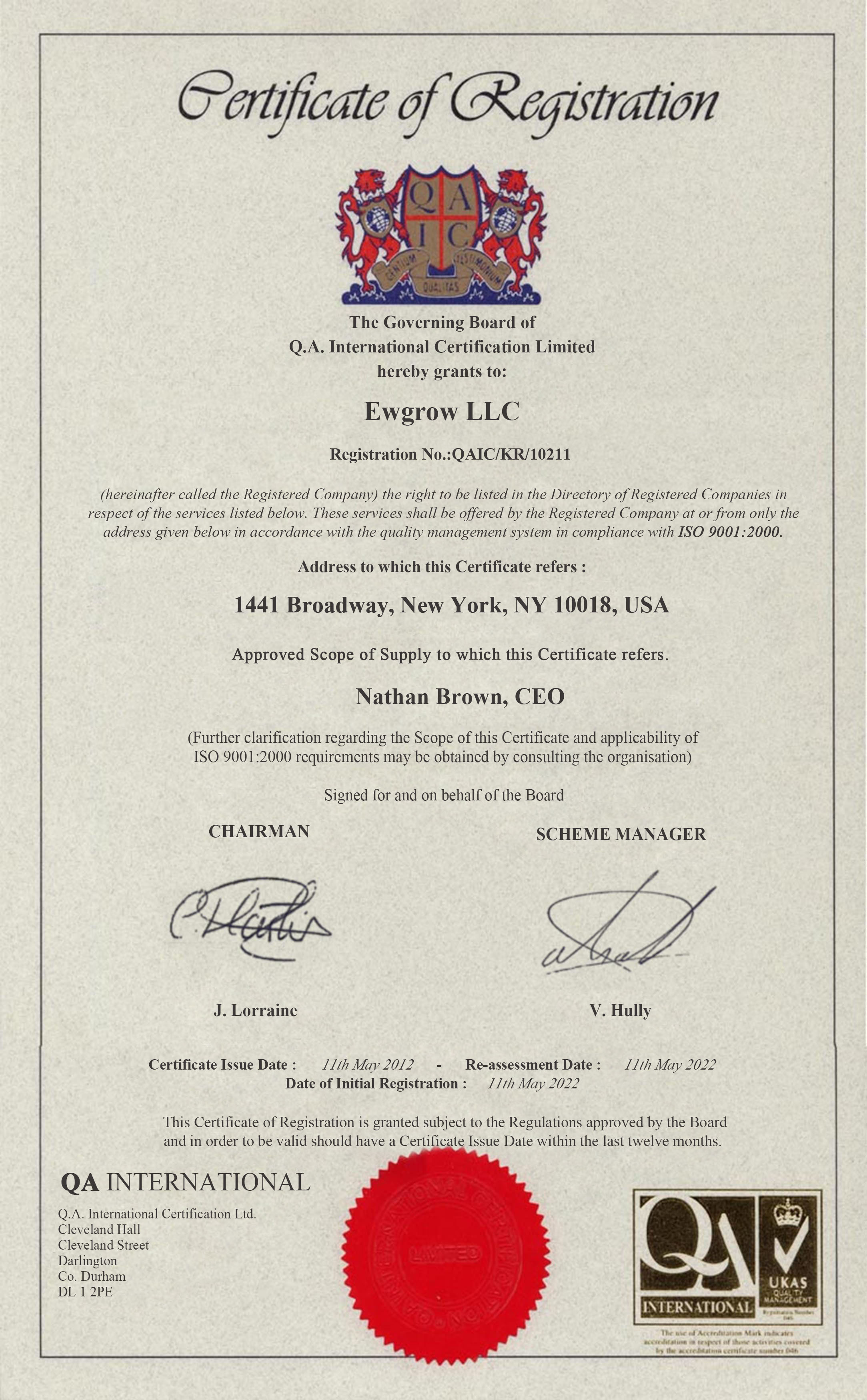 Registration Certificate