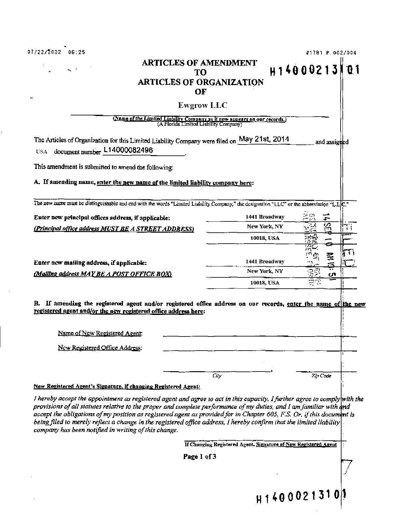Articles of Amendment