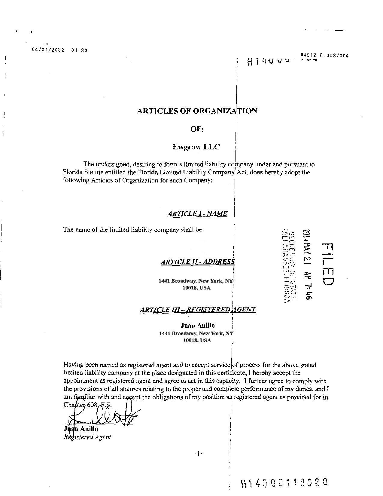 Articles of Organization